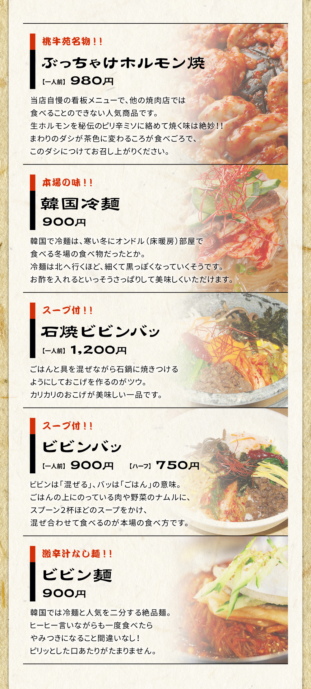 リーズナブルな価格で、美味しい韓国料理が味わえます。